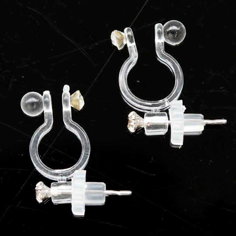 セット内容 イヤリングコンバーター(ペア) 一粒ピアス(ペア) シリコンキャッチ(ペア) 材質 樹脂製 大きさ 全長(高さ)約15mm×(横)約7mm 留め具幅約1〜3mm ピアス石約2mm 留め具 クリップ式オメガイヤリング 重さ ピアスなし片耳あたり 約0.075g ピアスあり片耳あたり 約0.161g ピアス落下防止のために コンバーターからピアスが落下するのを防ぐため、ピアスキャッチをつけることをおすすめします。