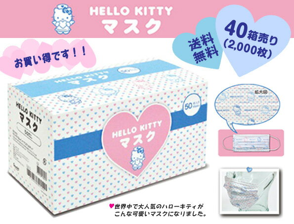 業務用 使い捨てマスク ハローキティ1ケースセット(40箱入り)病院 施設 かわいいメディコム プロレーンマスク
